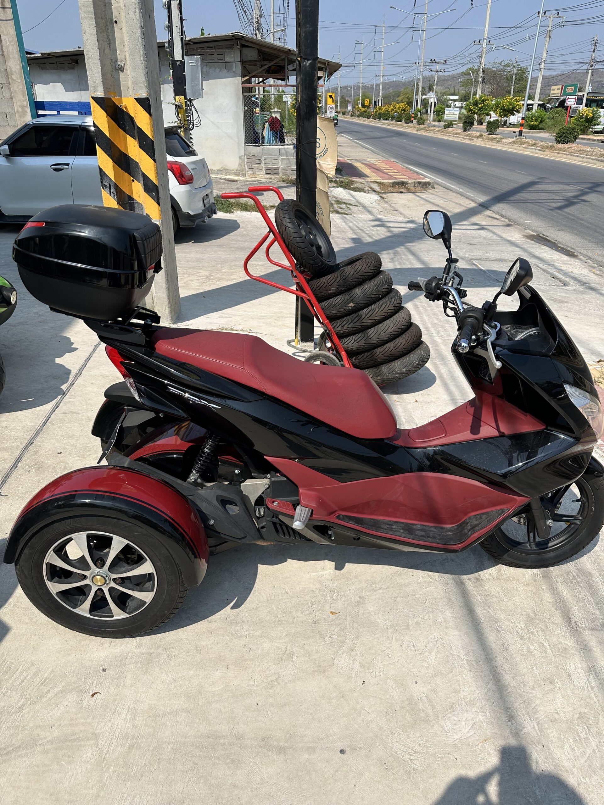 Enjoy the evolution of urban mobility with the Honda PCX 160cc Trike, expertly modified by Ozimoto. This trike not only elevates your riding experience with its unique design, but also combines Honda’s reliability with Ozimoto’s patented engineering.